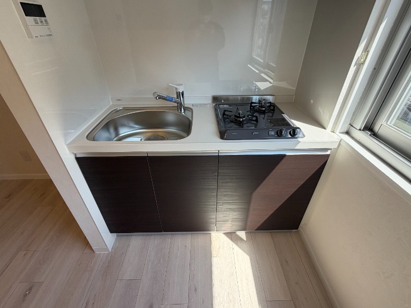 | 設備 | ガス(都市ガス)、インターホン(TVモニター付き)、オートロック、宅配ボックス、駐輪場、日当り良好、通風良好、フローリング、全居室フローリング、照明器具、ベランダ・バルコニー、L字型バルコニー、クローゼット、クローゼット数(1)、バス・トイレ別(別室)、シャワー、追い焚き、脱衣所、ウォシュレット、洗面所独立、コンロ口数(2)、コンロ種類(都市ガス)、システムキッチン | ||
